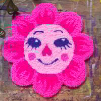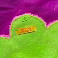 Add some squishy floral decoration to your walls with this neon pink flower named Amelia. Vibrant colors and soft textures mean this artwork is a pleasure to view and to touch. This piece measures 15 inches across. A small ring attached to the back makes hanging a breeze. Made with natural and synthetic fibers.