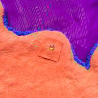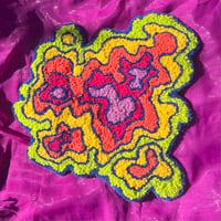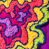 Vibrant colors and soft textures mean this artwork is a pleasure to view and to touch. This piece measures 20 inches by 22 inches. Small rings attached to the back make hanging a breeze. Made with natural and synthetic fibers.
