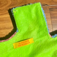 Vibrant colors and soft textures mean this artwork is a pleasure to view and to touch. Because these pieces are handmade, there may be slight variations in the shapes and colors of the waves. These pieces measure 12 inches by 12 inches at their widest points. A small ring attached to the back makes hanging a breeze. Made with natural and synthetic fibers.